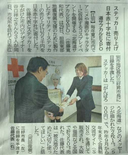 台風21号の被害、および胆振東部地震支援のため、ハッピープレイス様と共同でチャリティーステッカーを制作し、500円寄付で差しあげる形にて募金活動を行いました。